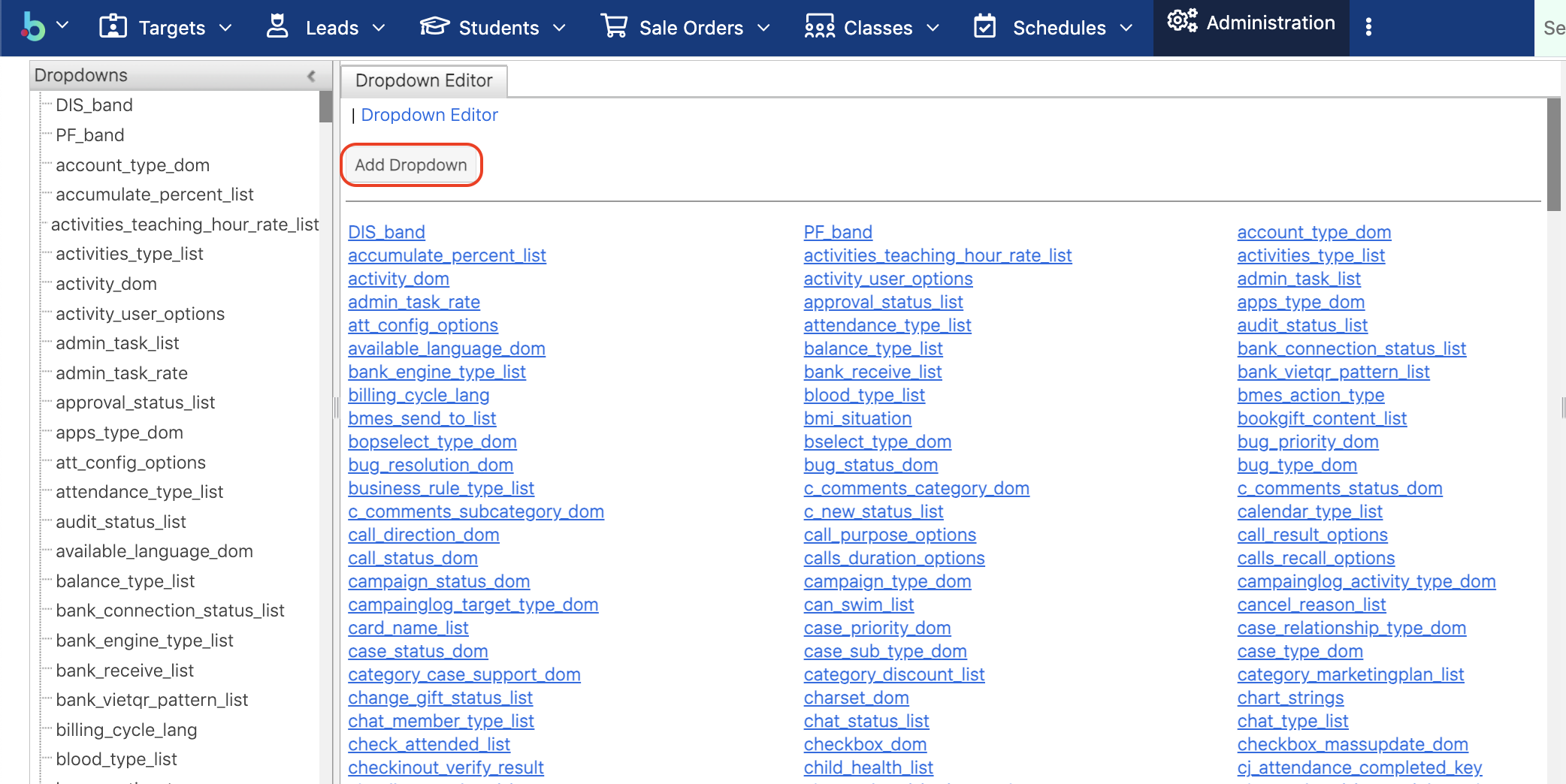 > **Bước 2:** Tại màn hình module Admin, nhấp chuột chọn **Dropdown Editor.**