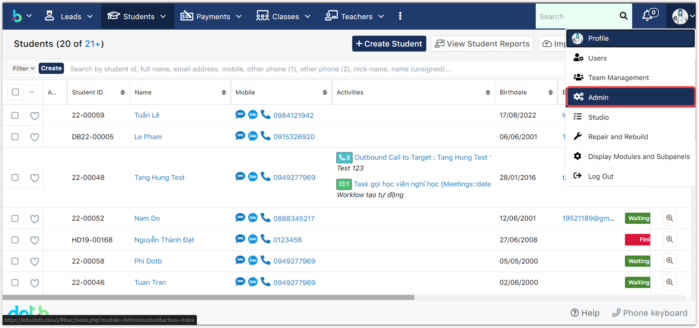 # Cấu hình tỷ lệ tham dự của học viên