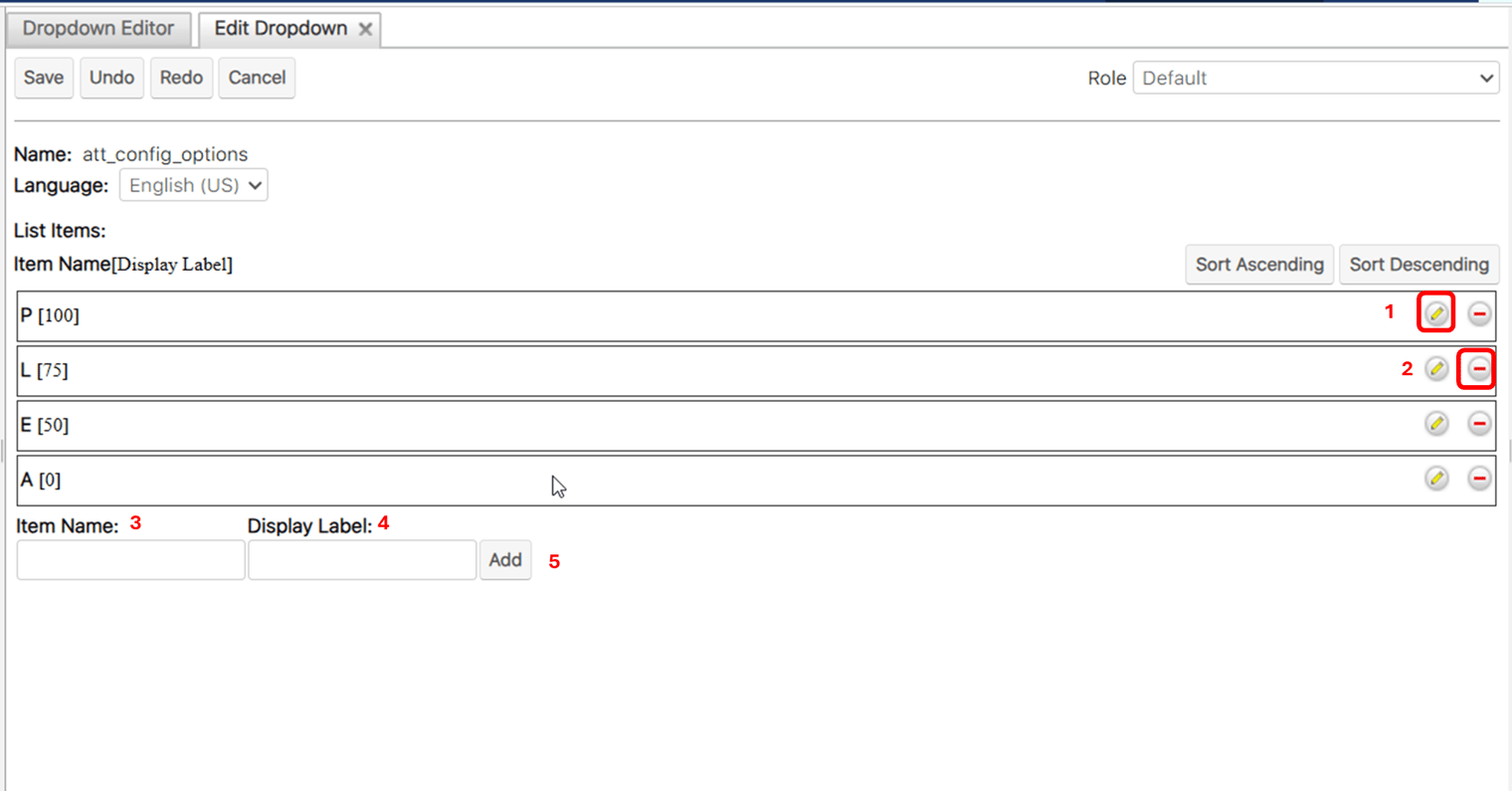 4. **Display Label:** Tên hiển thị của Item trong Dropdown (Có thể thay đổi trường thông tin này theo ngôn ngữ của hệ thống đang sử dụng)