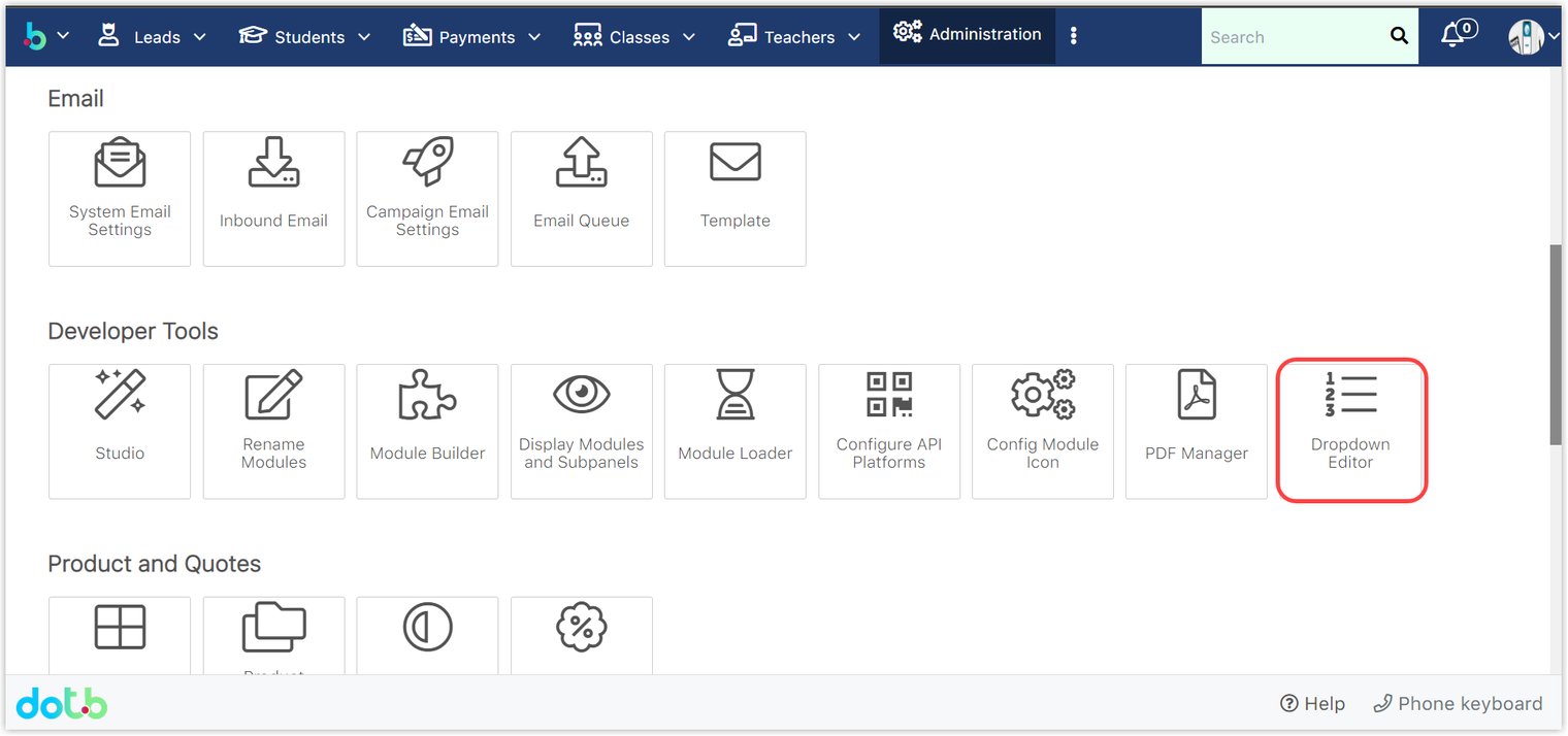 Bước 2: Tại màn hình module Administration, nhấp chuột chọn Dropdown Editor.​
